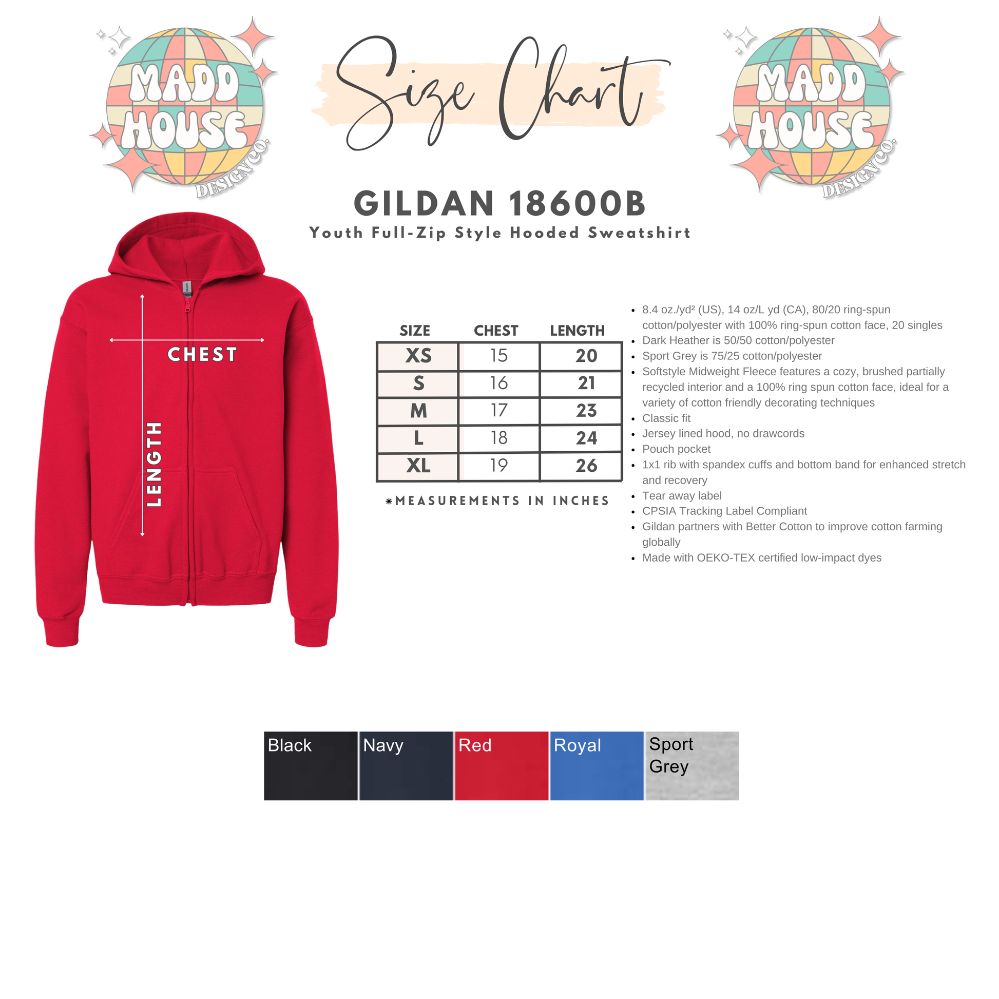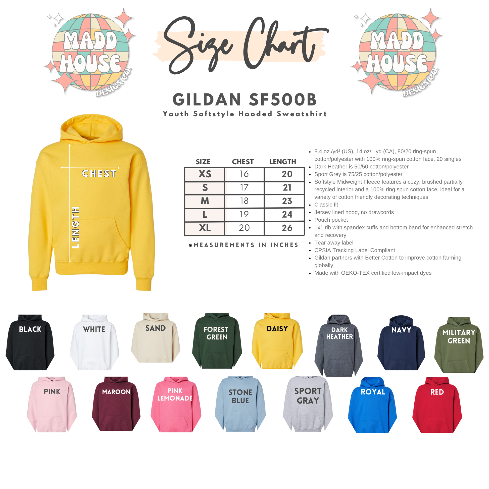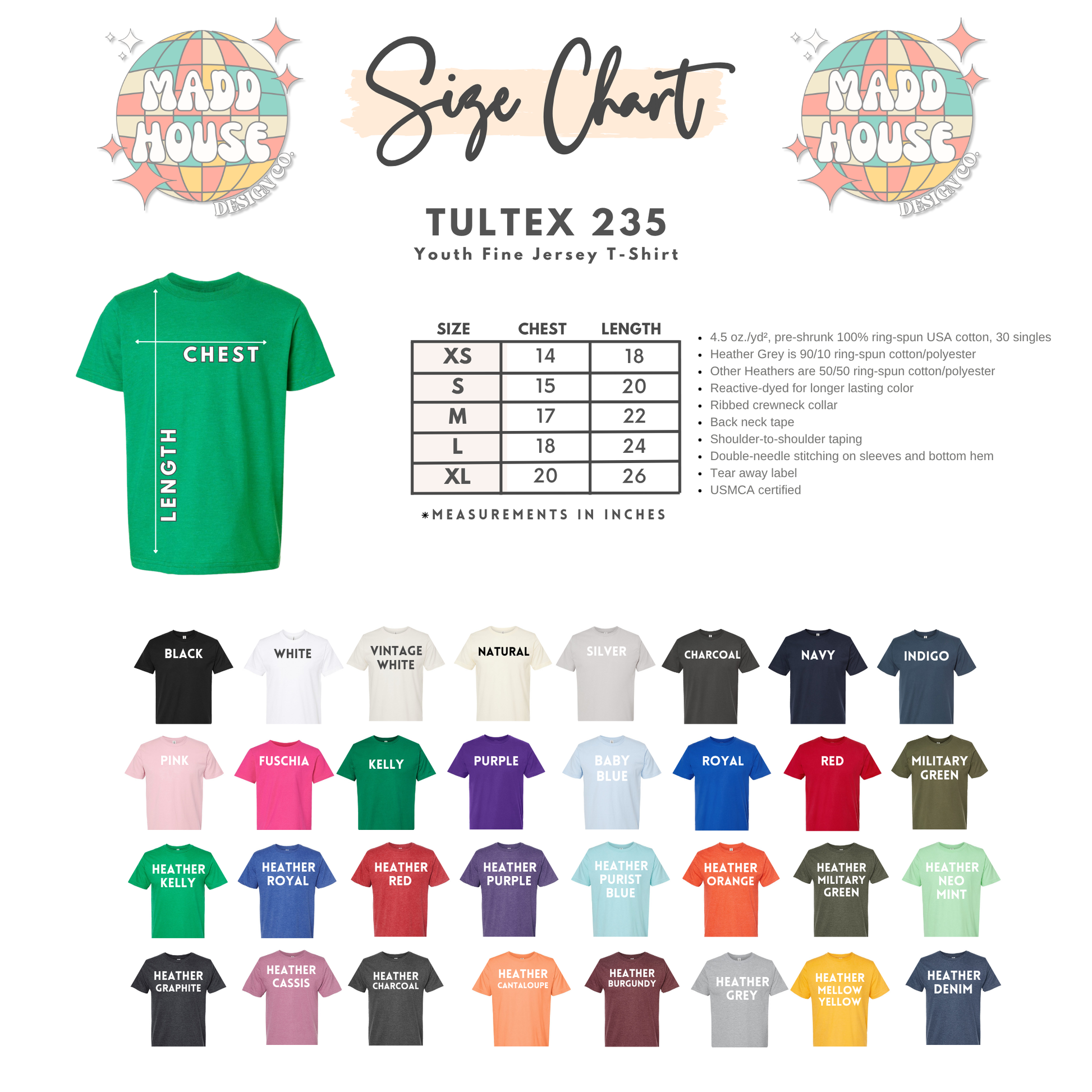 Size: Not sure? Measure a favorite tee or sweatshirt and compare it to our size chart, or swing by the shop to try on!